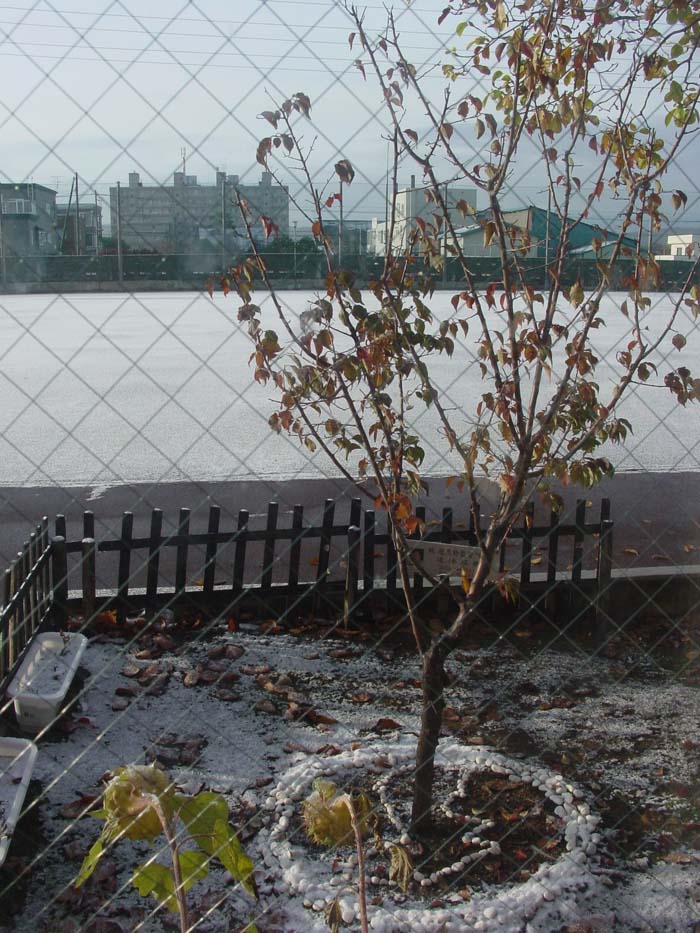 첫눈이 내린 홋카이도조선초급학교의 풍경입니다.
